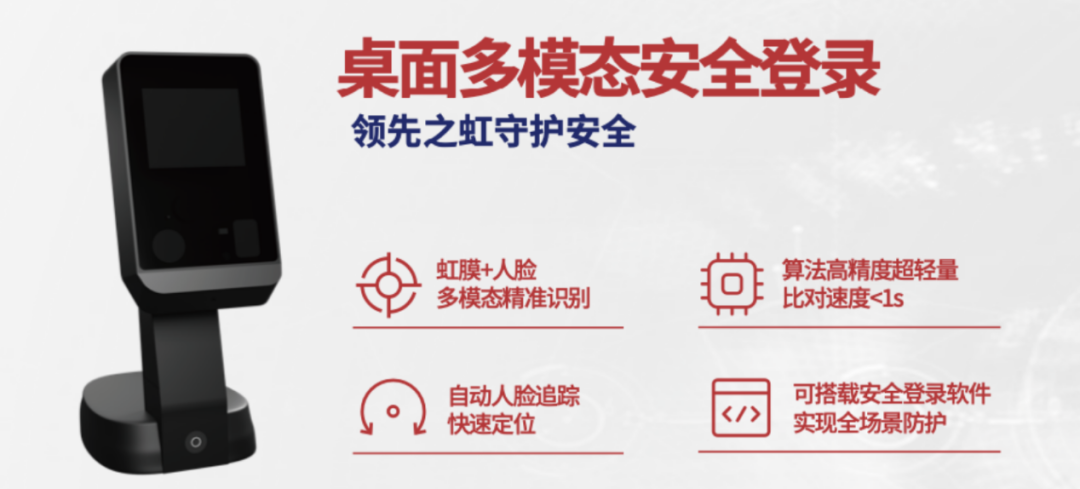 中科领虹自主研发的新品,通过融合虹膜、指纹、人脸、语音等生物特征识别技术,运用AI算法进行特征提取和数据融合,实现了更精准、快速和安全的身份认证,大幅提高了识别准确率和用户体验。