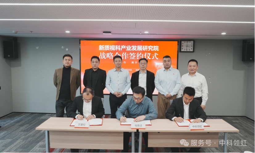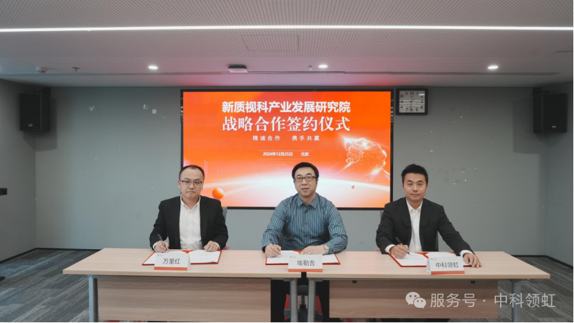 2024年12月25日,北京中科领虹科技有限公司(以下简称 “中科领虹”)与北京万里红科技有限公司(以下简称 “万里红”)、北京埃勒吉科技有限公司(以下简称 “埃勒吉”)关于成立“新质视科产业发展研究院”战略合作签约仪式圆满举行。